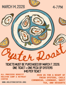 Purchase your tickets now to save your spot! Each ticket is $40 and redeemable for one peck of oysters. Chef Chandler will be making brisket chili, cornbread, sweet tea and lemonade- available by donation. Email Madeline with any questions: mchandler@holstoncenter.org